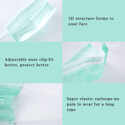 Borje® Green Disposable Face Mask 100 Pcs Green Face Masks 3 Ply Protection Masks